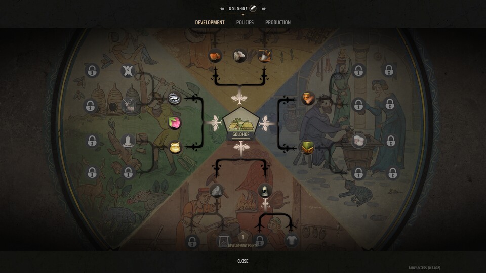 - 6: Diese Zahl zeigt euch den aktuellen regionalen Wohlstand/Reichtum. Die Hauptwährung für Käufe aller Bürger dieses Dorfes.
