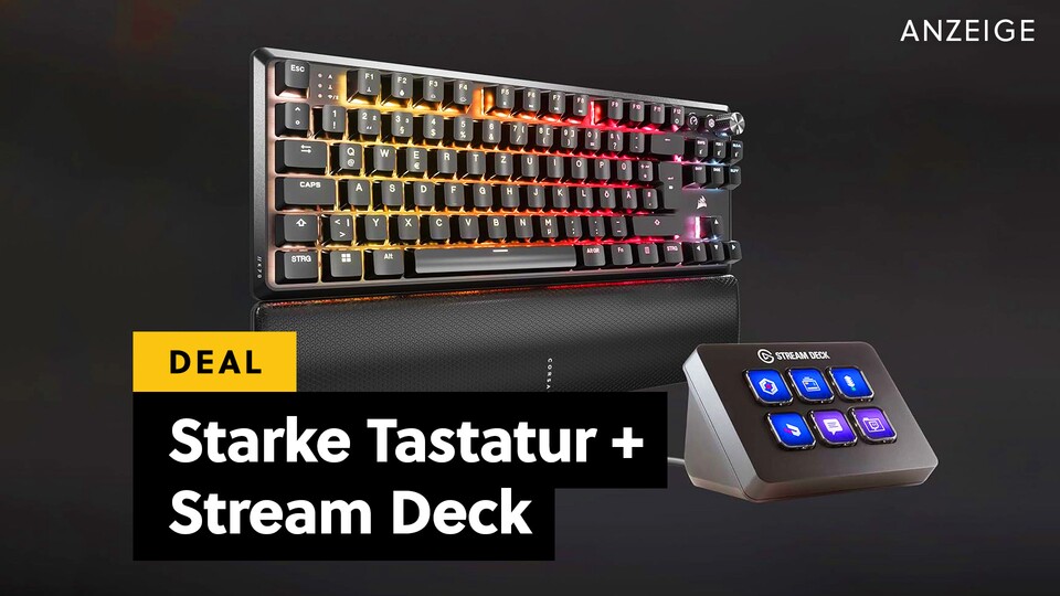 Die Corsair K70 Core TKL ist eine fantastische Gaming-Tastatur, die mit Schnelligkeit, Präzision platzsparendem Design überzeugen kann. Das allein spricht eigentlich schon für die kabellose Schönheit, aber auf Amazon könnt ihr gerade einen noch besseren Deal machen, wenn ihr die Tastatur zusammen mit dem Stream Deck Mini kauft, denn so könnt ihr extra sparen.