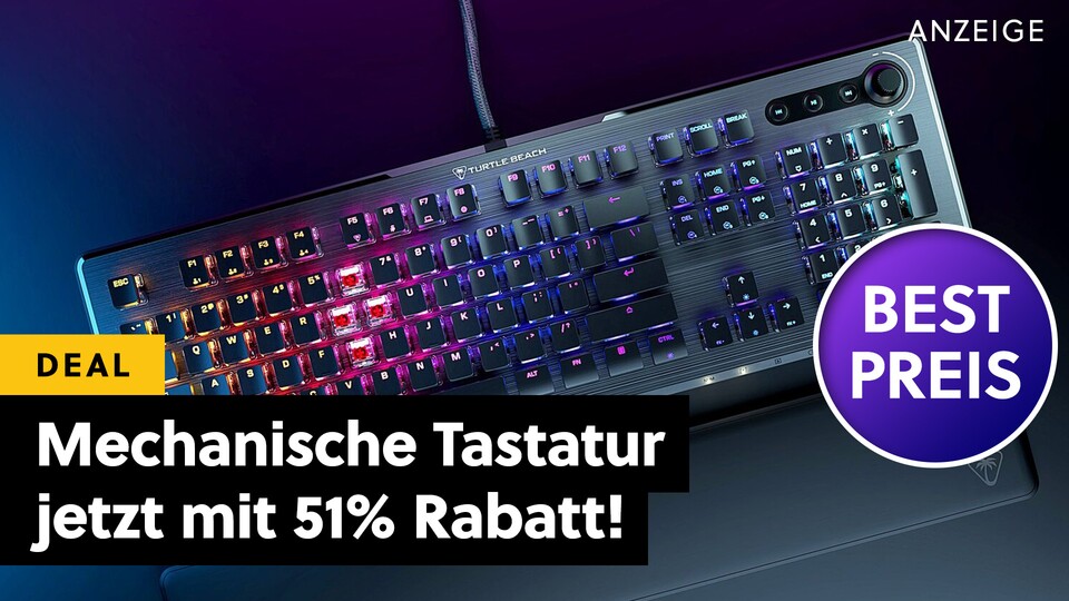 Bei MediaMarkt gibt es jetzt eines der besten Tastatur-Angebote der letzten Wochen und Monate: Die Turtle Beach Vulcan II mit mechanischen Schaltern ist aktuell zum halben Preis verfügbar und damit so günstig wie noch nie. Dank ihrer starken Features und des geringen Preises werdet ihr aktuell wohl keine bessere Gaming-Tastatur in puncto Preis-Leistung finden!