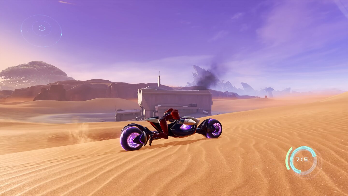: Es gibt da ja noch den Open-World-artigen Bereich der Spielwelt. Also den Part des Alien-Planeten, den Samus auf ihrem brandneuen Sci-Fi-Motorrad mit dem etwas fremdschämwürdigen deutschen Namen Vi-O-La bereist.