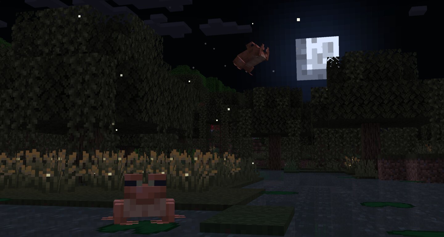 Damit sich die neuen Einheimischen wohlfühlen, wurden die verschiedenen Umgebungen aufgewertet. In Wäldern stolpert ihr in Zukunft beispielsweise über umgefallene Bäume, und in sumpfigen Gebieten gibt es jetzt Glühwürmchen-Blöcke.