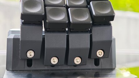 Alle acht Tasten lassen sich in der Höhe verstellen, damit ihr sie leichter mit den Fingern erreicht. Auch hier sind standardmäßig Cherry-MX-Silent-Schalter mit Hot-Swap-Funktion eingebaut. Die Doppeltipp-Funktion wird auch unterstützt.