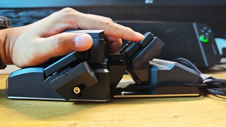 - Für den Daumen gibt es eine seitliche und eine horizontale Taste. Letztere ist auch in Höhe und Neigung verstellbar.