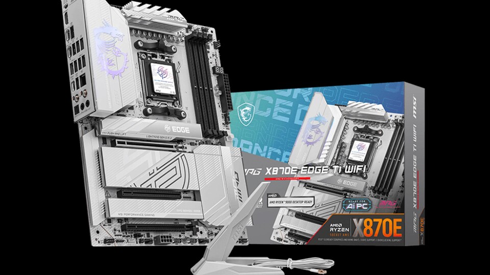 Das MPG X870E EDGE TI WIFI vereint stylishe Optik mit herausragender Performance. Das Board präsentiert sich in einem markanten weißen Design und bietet gleichzeitig eine Menge Features, die anspruchsvolle Gamer begeistern.