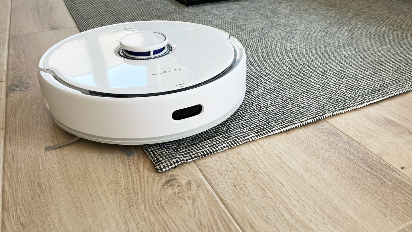 Wir hatten den Narwal Freo knapp fünf Wochen in einem Einfamilienhaus mit einem Mix aus Fliesen, PVC- und Teppichboden im Einsatz. Dabei reinigte er viermal die Woche das gesamte Obergeschoss mit rund 36 Quadratmetern an zugänglicher Grundfläche.