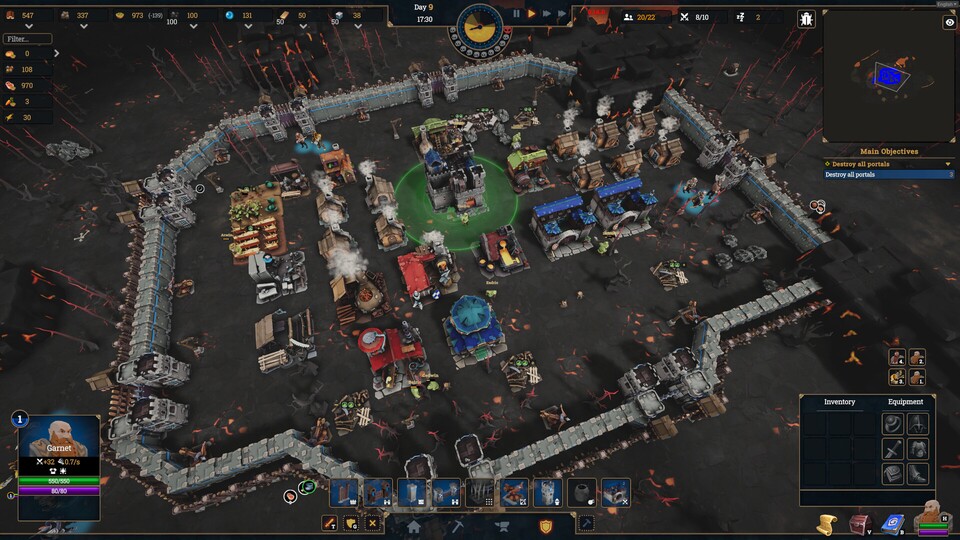 Doch sobald die Dunkelheit hereinbricht, kriecht das Böse aus seinen Löchern: Horden von Untoten stürmen eure Siedlung und das spiel wechselt in eine Diablo-eske Verteidigungsschlacht, in der ihr eure Basis verteidigen müsst.