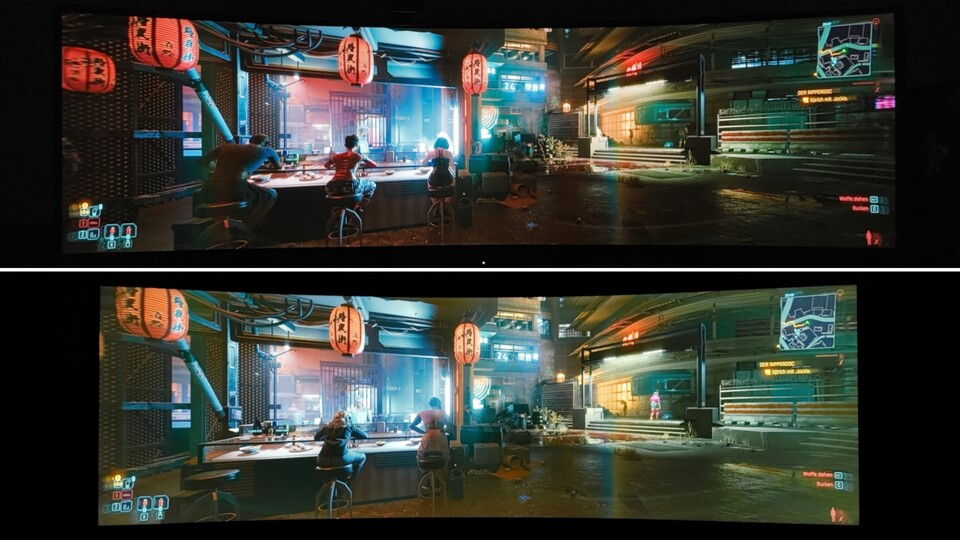 Auch wenn sich das, was ich tatsächlich sehe, per Foto und Bild im Browser nur bedingt einfangen lässt, schlägt der OLED-Monitor mein VA-Panel in Cyberpunk 2077 erwartungsgemäß um Längen. Er punktet unter anderem mit ...
