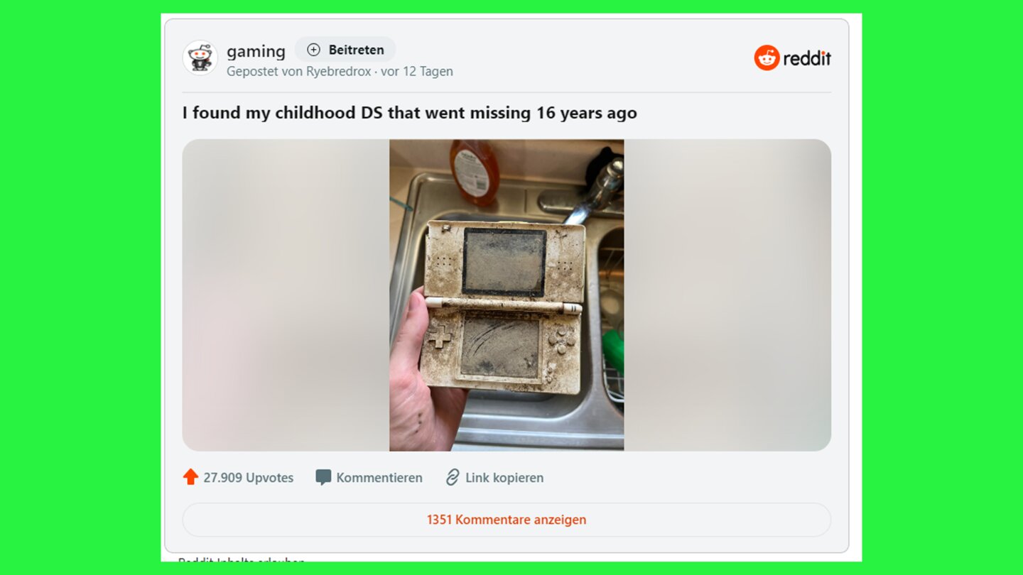 Doch der Spielspaß findet sein jähes Ende, als der Reddit-User seinen Nintendo DS verliert … oder von den Geschwistern aus den Händen gerissen bekommt … oder von Gaming-süchtigen Außerirdischen entführt wurde.