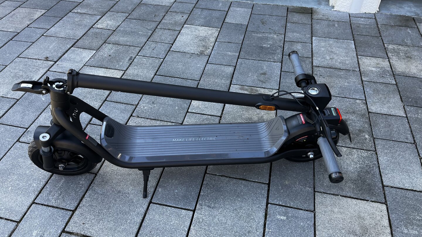 Der Lenker ist außerdem nicht klappbar (anders als beim KQi 100F), was den Transport zusätzlich erschwert. Dafür lässt sich der Rest des Scooters leicht zusammenklappen und verstauen.