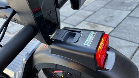 Lediglich das klobige Licht in der Lenkermitte sowie das Display am rechten Griff fallen aus dem Muster heraus. Beide wirken billiger als der Rest des Scooters.