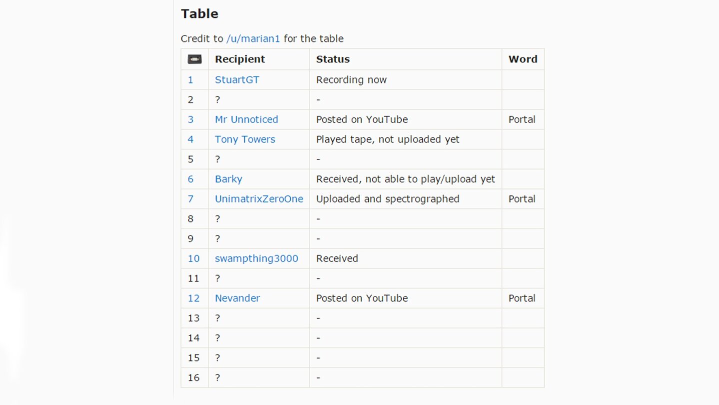 Kurz nach dieser Entdeckung erreichte UnimatrixZeroOne eine Rundmail, die an alle Moderatoren des NMS-Subreddits ging. So erfuhr er, dass auch einige seiner Freunde eine Kassette erhalten haben und manche Bänder auch bei Spielern landeten, die nicht Teil der Subreddit-Verwaltung waren. Bis zu diesem Zeitpunkt haben sich sechs Menschen bei UnimatrixZeroOne und seinen Kollegen mit ihrer Kassette gemeldet, eine ganze Reihe an Bändern ist bisher allerdings noch verschollen.