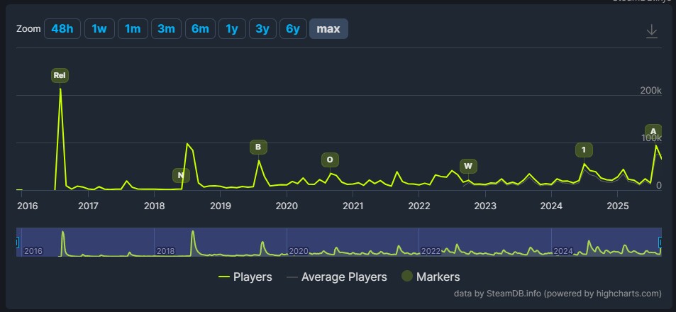 Der Erfolg kam nicht aus dem Nichts, sondern ist direkt auf das umfangreiche Update 6.0, betitelt »Voyagers«, zurückzuführen, das Ende August 2025 kostenlos für alle Plattformen erschien. Laut den Daten von SteamDB schnellte die Zahl der gleichzeitigen Spieler am Wochenende auf einen Spitzenwert von 93.332: