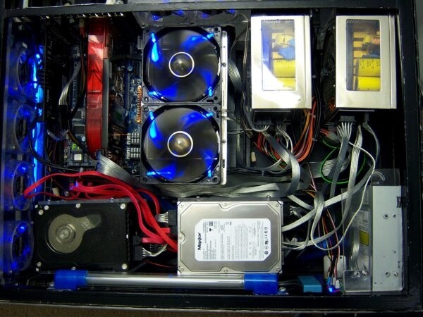 Der Computer Desk hier ist eindeutig mehr als nur ein Case-Mod oder Case-Con. Gleich der ganze Schreibtisch wurde umgebaut, um als Gehäuse für den Rechner zu dienen. Im Schreibtisch stecken gleich zwei 550-Watt-Netzteile, ein Abit IP35-Mainboard, ein Intel Core 2 Quad Q6600 mit 3,5 GHz, 8 GByte RAM, eine Radeon HD 2900 XT und mehrere Festplatten.