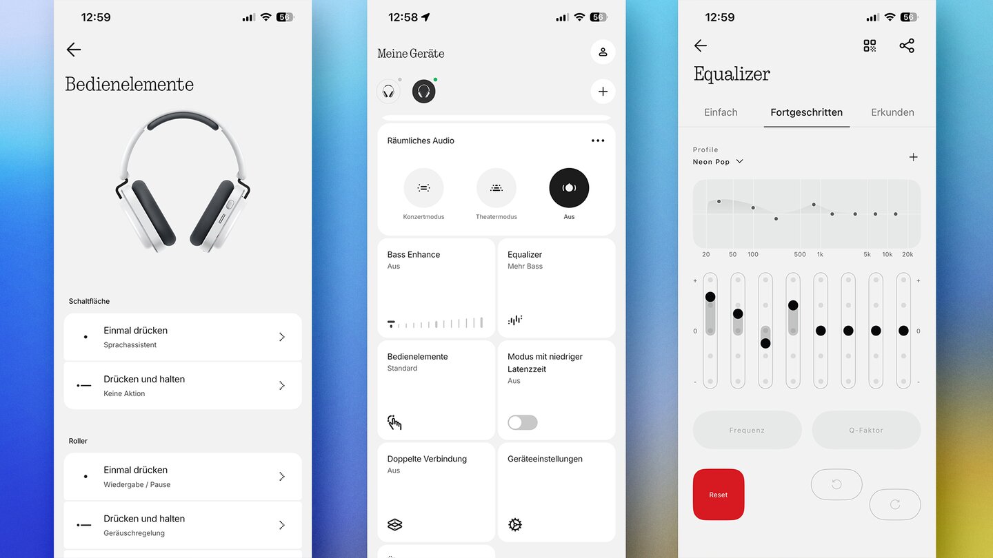Aber natürlich muss man Kompromisse in Kauf nehmen: Die fehlende Trageerkennung ist für mich ein klarer Nachteil. Wer gerne Spatial Audio mit Head-Tracking nutzt oder einen ausgewogeneren Klang bevorzugt, muss ebenfalls zum teureren Modell greifen. Für eine UVP von knapp 160 Euro ist das Gesamtpaket allerdings trotzdem sehr stimmig.