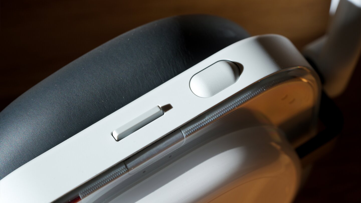 – ein größerer Knopf, der sich drehen lässt, um die Lautstärke zu ändern. Zusätzlich kann er gedrückt werden, um zwischen ANC-Modi zu wechseln oder die Wiedergabe zu stoppen beziehungsweise fortzusetzen.Paddle