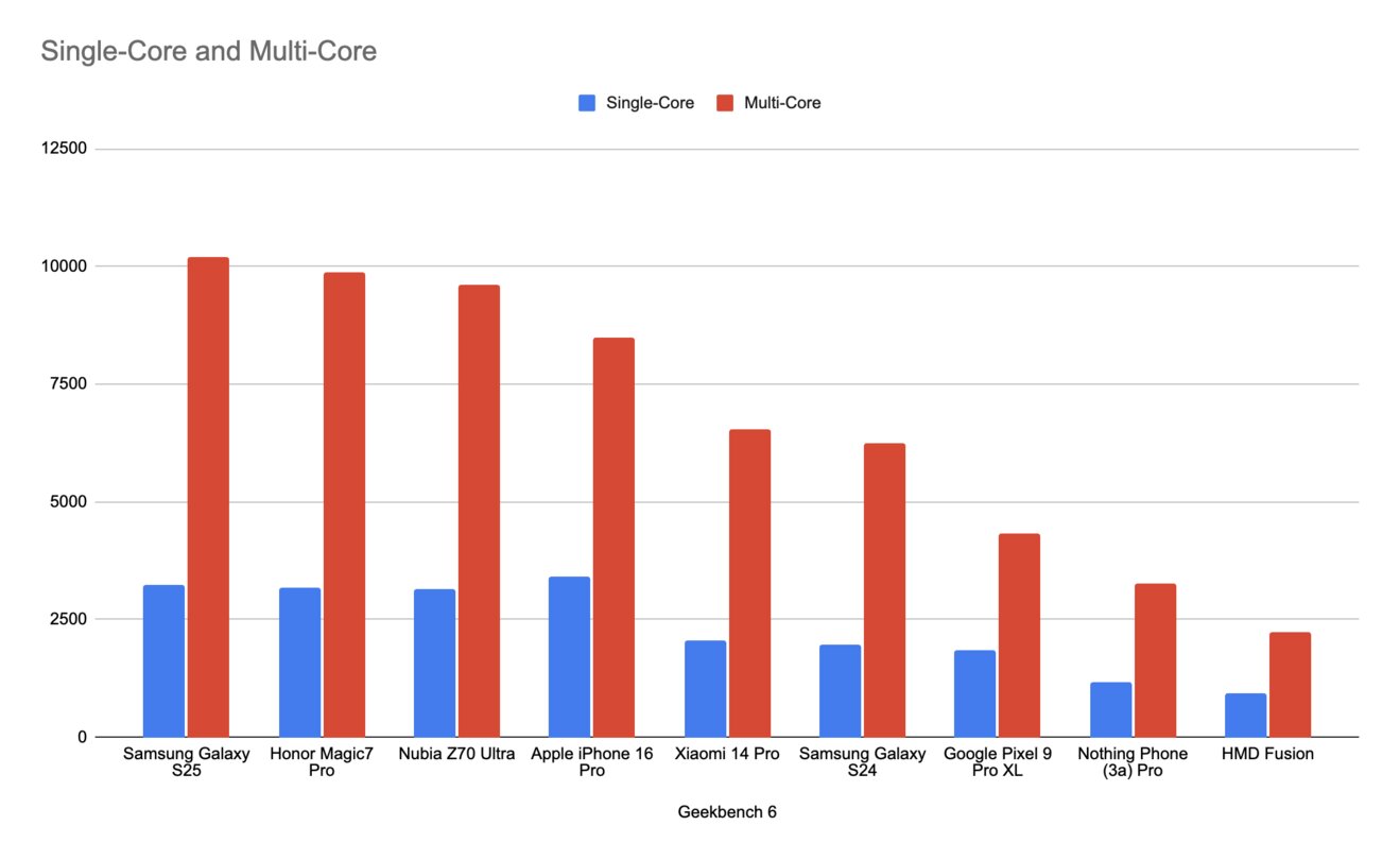 Damit liegt es über dem HMD Fusion, aber erreicht nur ein Drittel der Punkte von Honor Magic7 Pro, Galaxy S25 oder auch Nubia Z70 Ultra.