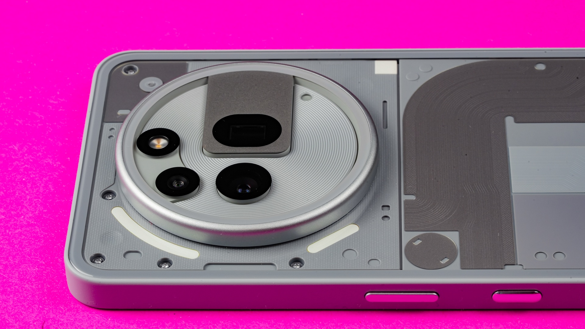 Daneben ist die Kamerainsel nun deutlich größer als beim Phone (2a) Plus. Sie ähnelt entfernt der des Honor Magic7 Pro, denn auch Nothing bringt das Kamerasystem in einer großen, kreisförmigen Ausbuchtung unter.