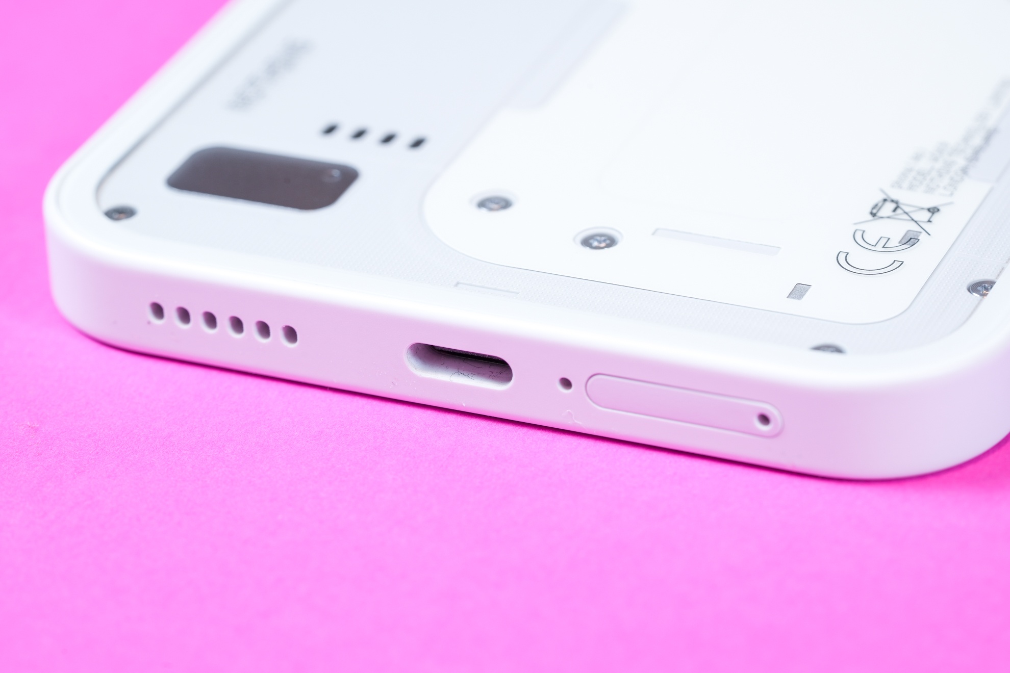 Wie inzwischen bei vielen Geräten üblich installiert Nothing ab Werk eine Schutzfolie. Bei der handelt es sich allerdings um eine sehr dünne Kunststofffolie, die schnell Kratzer bekommt.