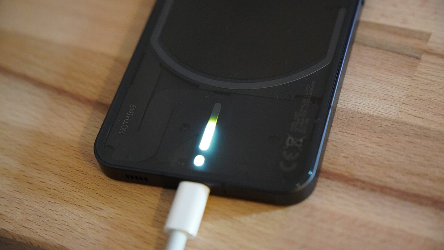 aktiviert wird. Eine ähnliche Funktion findet sich beim Aufladen des Nothing Phones wieder. Hängt ihr das Ladekabel dran, zeigt die untere LED-Leiste den aktuellen Akkustand des Geräts.