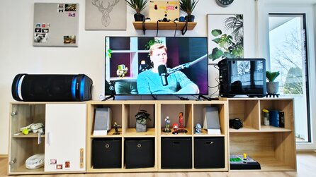 In meinem Test habe ich die Lautsprecher in zwei verschiedenen Konfigurationen genutzt: Auf dem Schreibtisch als PC-Lautsprecher und am Fernseher als Soundbar-Ersatz.