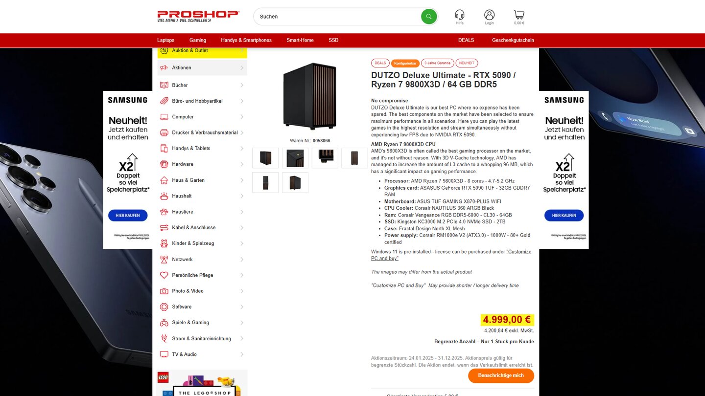 - Proshop: Hier habe ich bislang nur zwei Prebuilds und drei RTX 5070 Ti (warum auch immer) gesehen, aber keine RTX 5090 oder RTX 5080, die ich bestellen könnte.