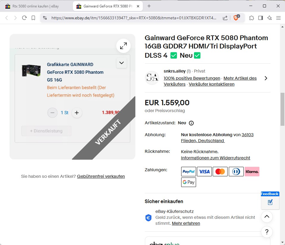 - Bei eBay sind in den letzten Tagen über einhundert RTX-5000-Grafikkarten verkauft worden.