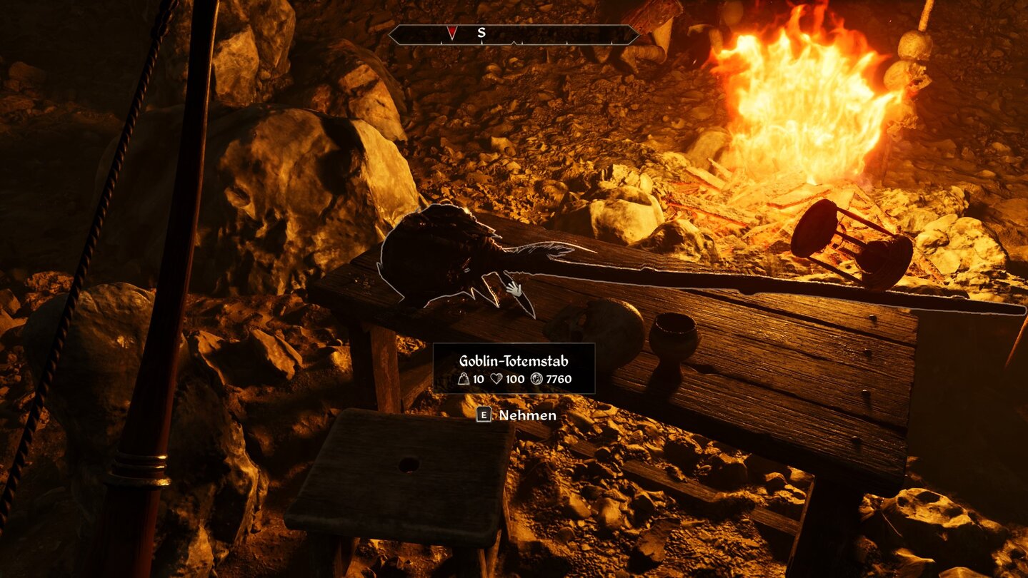 Statt die Kriege aber auf die Goblin-Quest zu beschränken, baute Betesda sie zu einem System aus, das auch außerhalb davon funktioniert. So können auch wir jederzeit einen Goblin-Krieg auslösen, indem wir einen Totemstab stehlen und in der Höhle eines anderen Stammes platzieren. Das funktioniert allerdings nur mit Goblins, die zu einem Stamm gehören, wie ihr Namenszusatz verrät.