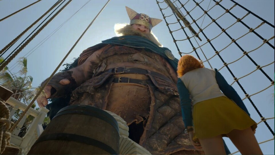 Die optische Täuschung, dass Boogey und Woogey größer erscheinen als Ruffy und seine Crew, nennt man im Filmjargon »Forced Perspective« oder »erzwungene Perspektive«. Genutzt wurde die schon bei Herr der Ringe.