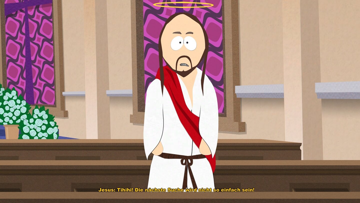 In South Park: Der Stab der Wahrheit schaffen wir das, was viele Menschen seit Jahrtausenden verzweifelt versuchen. Wir finden Jesus! Und der freut sich so sehr darüber, dass er sich prompt wieder versteckt. Da er allerdings währenddessen kichert wie ein Vorschulkind, macht er es uns das Finden nicht ganz so schwer.
