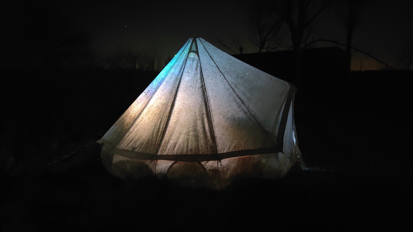 Wenn so ein Zelt, in dem einige Dinge wie der Monitor und die Powerstation schon aus Faulheit dauerhaft herumstehen, ein ganzes Jahr durchgehend aufgebaut und genutzt bleibt, lassen sich erstklassige Langlebigkeitserfahrungen für die Technik sammeln. Übrigens, geklaut wurde nie etwas, es ist aber auch sehr ländlich und mit den Nachbarn war ich damals zusammen auf der Schule.