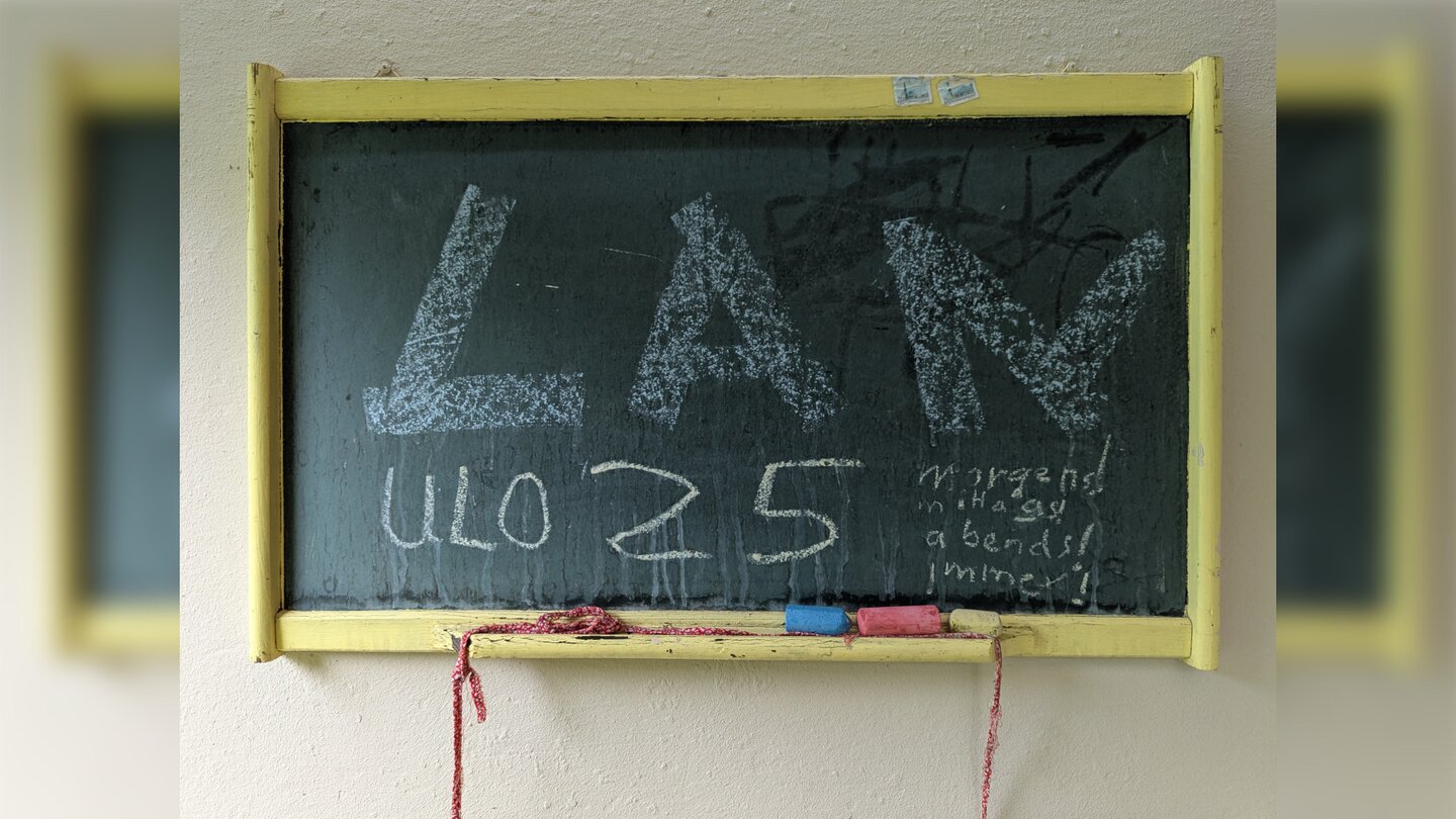 Die Mutter hat sich kurz vorher noch im Gemüsegarten ausgetobt, ehe sie sich zu uns setzt. Auf mich wirkt die Szenerie familiär und irgendwie auch festlich. Ich war als Teenie auf LAN-Partys, aber das hier ist etwas Anderes.