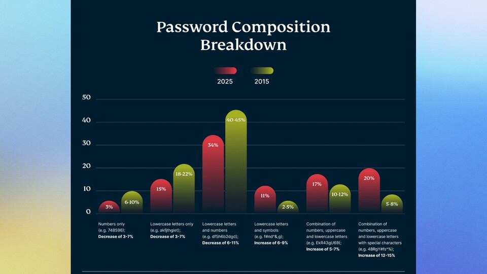 Die Analyse zeigt im Vergleich zu 2015 aber auch Verschiebungen. Rein numerische Zeichenfolgen dominierten damals die schwachen Passwörter; heute sind es laut Fowler häufiger Namen in Kombination mit Zahlen und einem einzelnen Sonderzeichen.