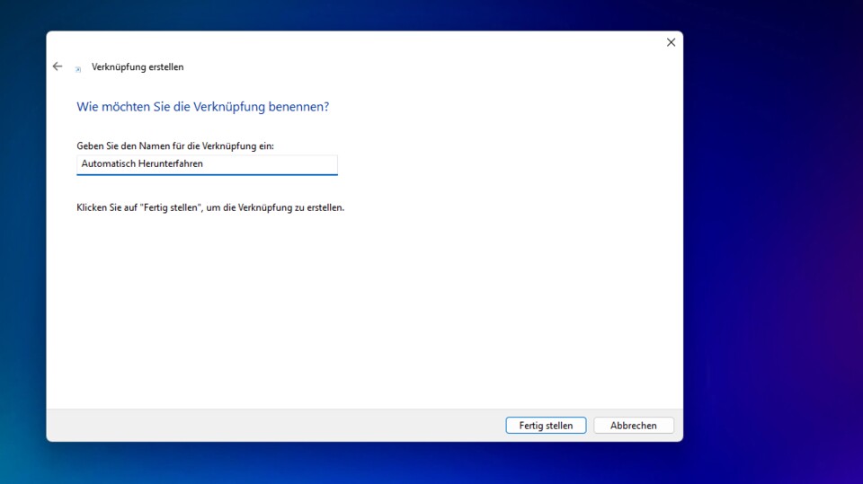 . - Gebt der Verknüpfung einen beliebigen Namen und klickt auf