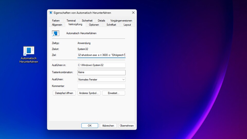 - PC automatisch herunterfahren per Desktopverknüpfung