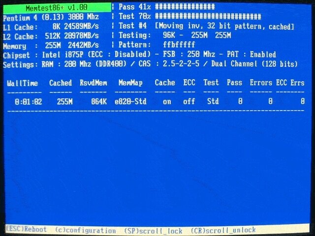 Meist fällt der Verdacht bei sporadisch auftretenden Fehlern eher auf einen Software-Bug als auf einen defekten RAM-Riegel. Da Speicherzellen dynamisch beschrieben werden, sind die auftretenden Fehler nicht immer durch den Start einer bestimmten Anwendung reproduzierbar. Allerdings manifestieren sich die Fehler meist, wenn Sie viel RAM benötigen, weil zum Beispiel mehrere Anwendungen laufen. Gewissheit über den Zustand Ihres Arbeitsspeichers verschaffen Sie sich mit Memtest86+. Das Diagnose-Programm ist wahlweise als CD-Image, als Version für USB-Sticks oder Disketten verfügbar. Im Vergleich zu einfacher Windows-Tools testet das Programm den vollständigen RAM und kein Byte bleibt ungeprüft, weil das Betriebssystem einen Teil des Speichers belegt. Lassen Sie Memtest86+ mindestens zwei komplette Testdurchgänge absolvieren oder über Nacht laufen. Falls ein Fehler berichtet wird, prüfen Sie jeden Riegel noch einmal einzeln.