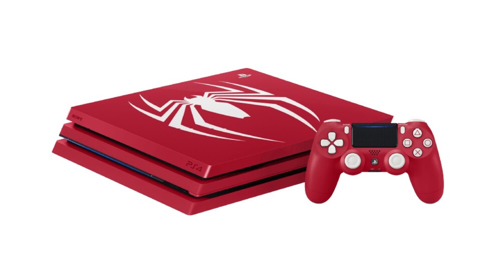 Für 499 Euro bieten MediaMarkt und Otto.de die Playstation 4 Pro mit rotem Gehäuse und auffälligem Spinnen-Logo auf der Oberseite an. Mit dabei ist ein ebenfalls Spiderman-roter Controller. Ebenfalls mit dabei ist natürlich das dazugehörige Spiel Marvel's Spider-Man und ein Gutschein für den DLC »Die Stadt, die niemals schläft« im Playstation Store.