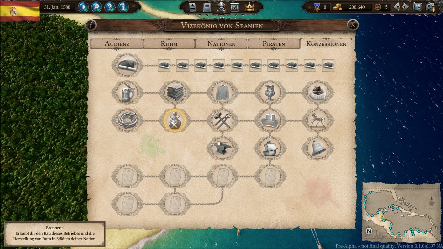 Der gierige Vizekönig, vor dem ihr in Port Royale 4 katzbuckelt, lässt sich aber nicht nur die Konzessionen für die Produktion von Tuch, Bier oder Vasen versilbern. Nein, auch neue Kapitänskomissionen kauft ihr bei dem Halsabschneider - und Handelslizenzen. Für. jede. einzelne. Stadt. Man kann das Geld in Port Royale 4 gar nicht schnell genug scheffeln, wie der Vizekönig eurer gewählten Nation es sich in die Taschen stopft. Was vermutlich eine gar nicht so unrealistische Abbildung der damaligen Verhältnisse ist ...