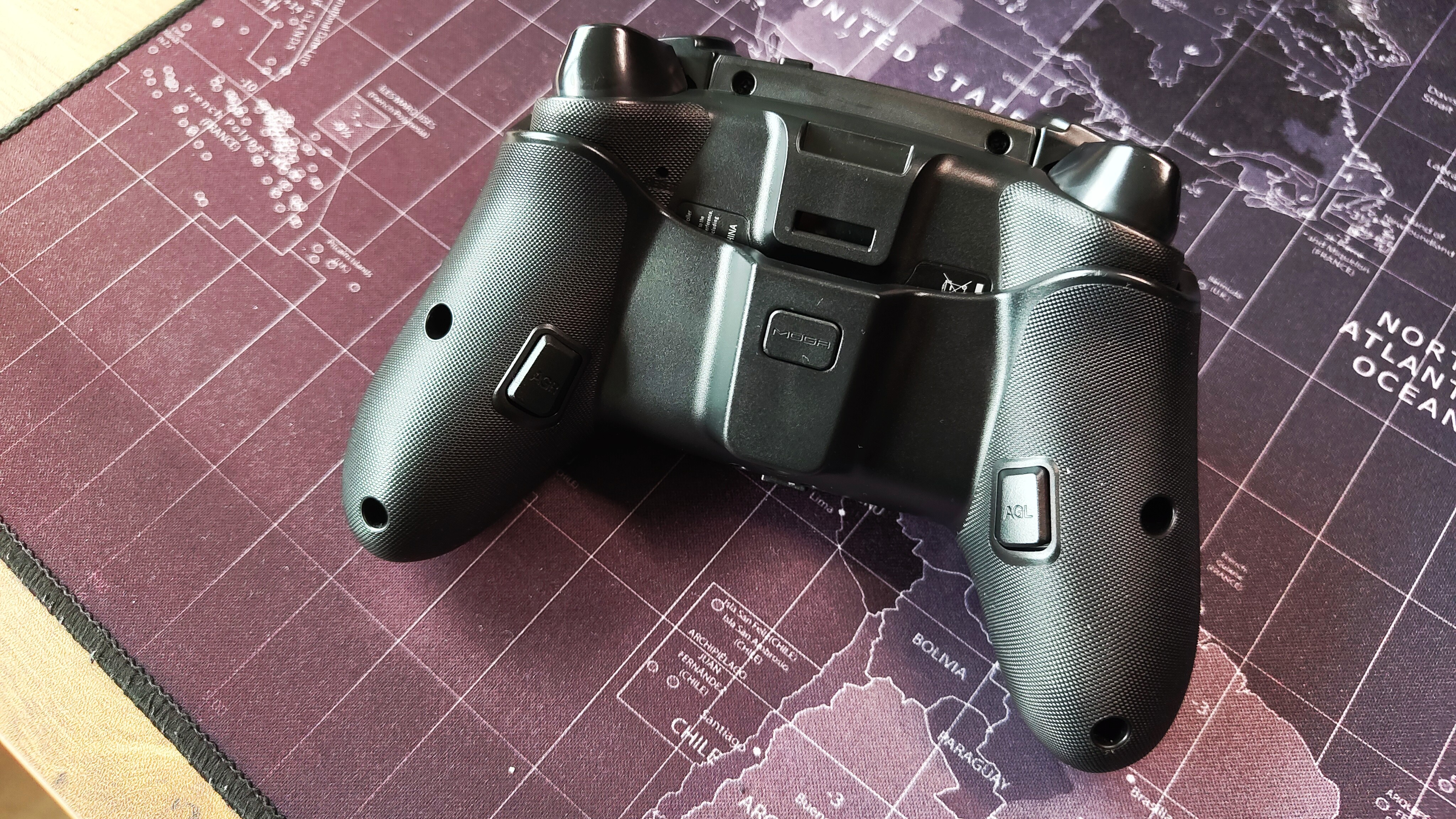 Was den Moga XP-Ultra herausstechen lässt, ist seine Modularität. Wie man unschwer erkennen kann, sind die Griffe abnehmbar. Diese sorgen allerdings nicht nur für einen besseren Halt, sondern ergänzen das Gerät um zwei zuweisbare Tasten auf der Rückseite.