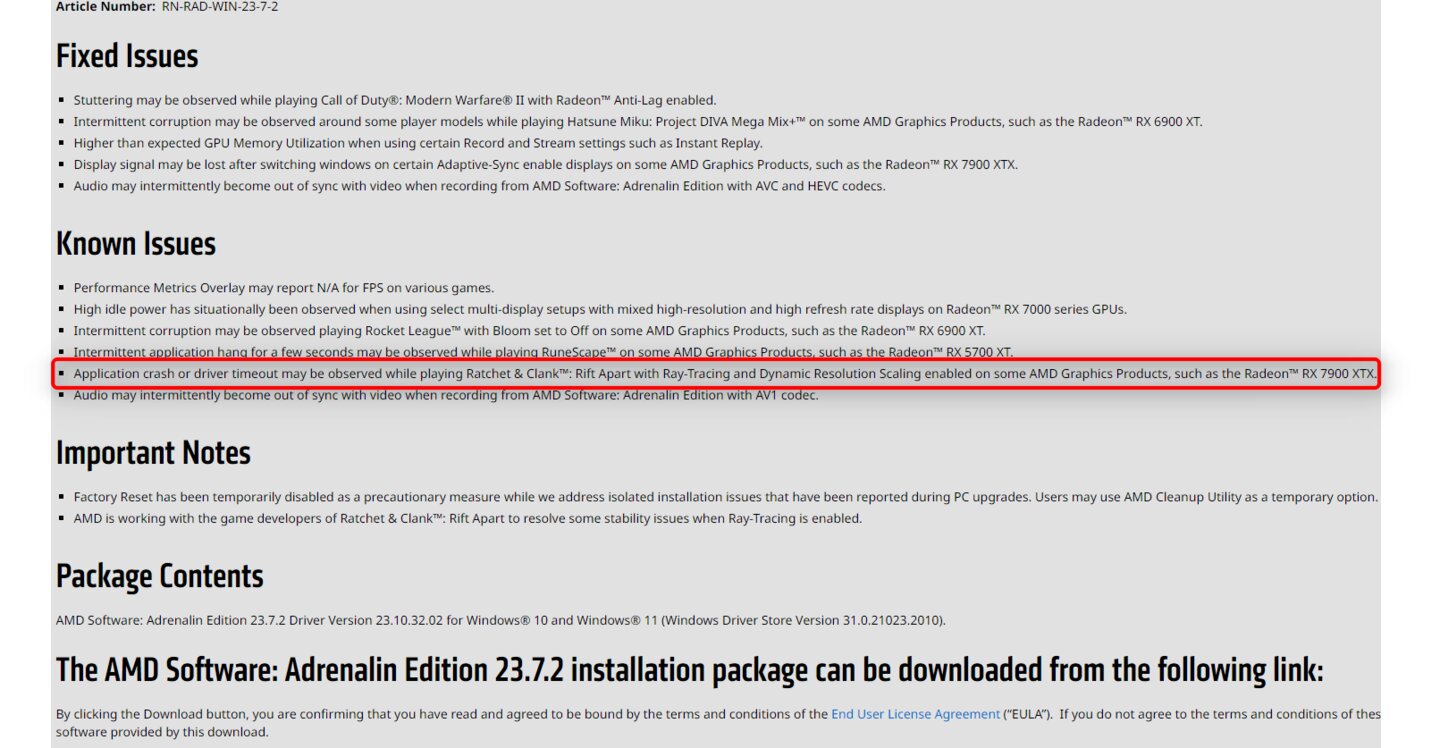 Insomniac hat bekannt gegeben, dass das Spiel zum heutigen Launch kein Ray Tracing auf AMD-Grafikkarten unterstützen wird. Der Grund dafür sind mögliche Abstürze, die im aktuellen Treiber-Changelog von AMD erwähnt werden.