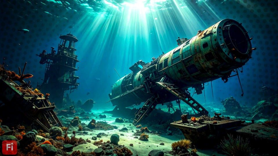 Hinab durch das glühende Plasma des Wiedereintritts, durch die trüb-kalten Wolken und schließlich ins düstere Nass des Pazifiks, wo auch sie in rund 4.000 Metern Tiefe irgendwo neben Mir, Skylab und Co. um den Point Nemo herum zum Liegen kommt.
