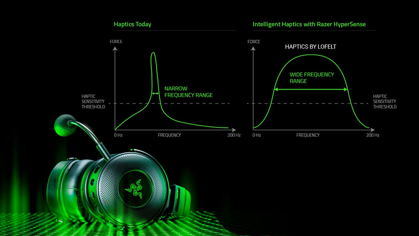 Was ist HyperSense? Wenn ihr ein Videogame zockt, nutzt ihr für gewöhnlich nur zwei Sinne, nämlich eure Sicht und euer Gehör. Doch was wäre, wenn man das Spiel auch noch “spüren” kann? Dazu gab es bisher unter anderem vibrierende Controller und Joysticks, doch dank der innovativen HyperSense-Technologie von Razer wird die Immersion im Spiel noch intensiver, indem ihr den Sound regelrecht spüren könnt.