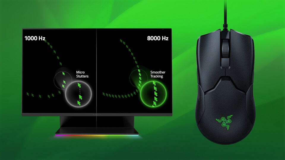 Seit gefühlten Ewigkeiten liegt die maximale Abtastrate von Gaming-Mäusen bei 1.000 Hertz. Die meisten Mäuse können also 1.000 Mal in der Sekunde Positionsdaten abfragen, um möglichst genaue Bewegungen zu ermöglichen. Razer legt jetzt auf diesen Wert mal eben das Achtfache oben drauf.