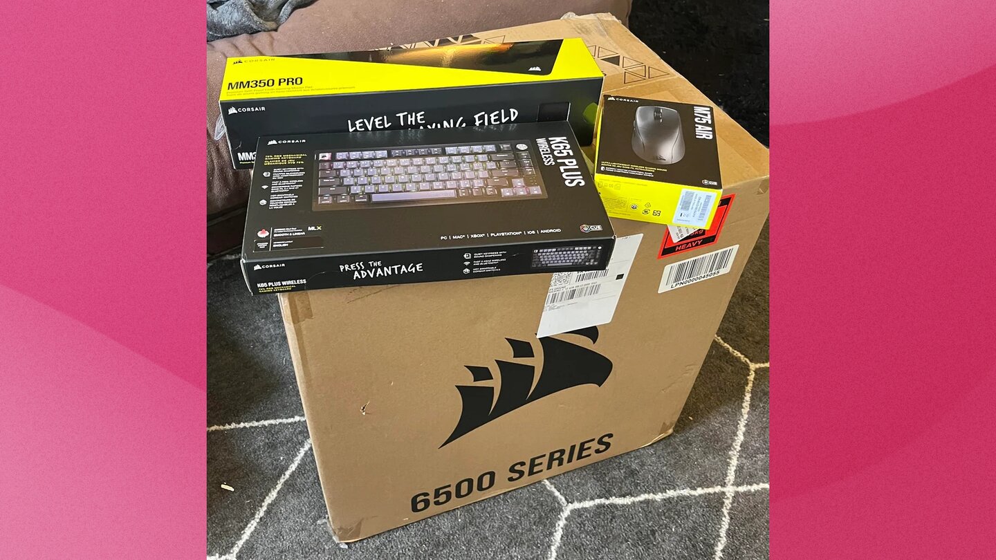 Genauer gesagt handelt es sich um ein Gehäuse der 6500er-Reihe, die Tastatur K65 Plus, die Maus M75 Air und das Mauspad MM350 Pro.