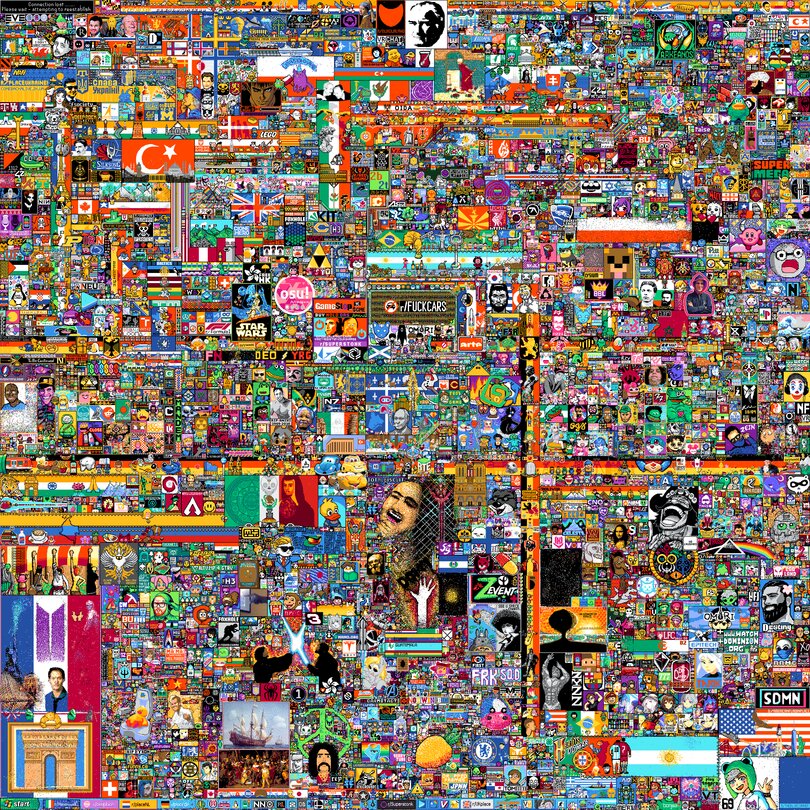 Da jeder Reddit-Nutzer nur alle fünf Minuten eine einzelne, winzige Kachel platzieren kann, ist es unmöglich, allein zu bauen. Stattdessen sind die Nutzer gezwungen, zusammenzuarbeiten und koordinierte Gemeinschaften zu bilden, um kollektive Pixelkunstwerke zu schaffen.