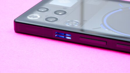 An beiden Seiten besitzt das Redmagic 11 Pro zwei Lüfterschlitze, die die warme Luft aus dem Inneren über den verbauten, physischen Lüfter nach außen bringen. Das war bereits bei den Vorgängermodellen so.