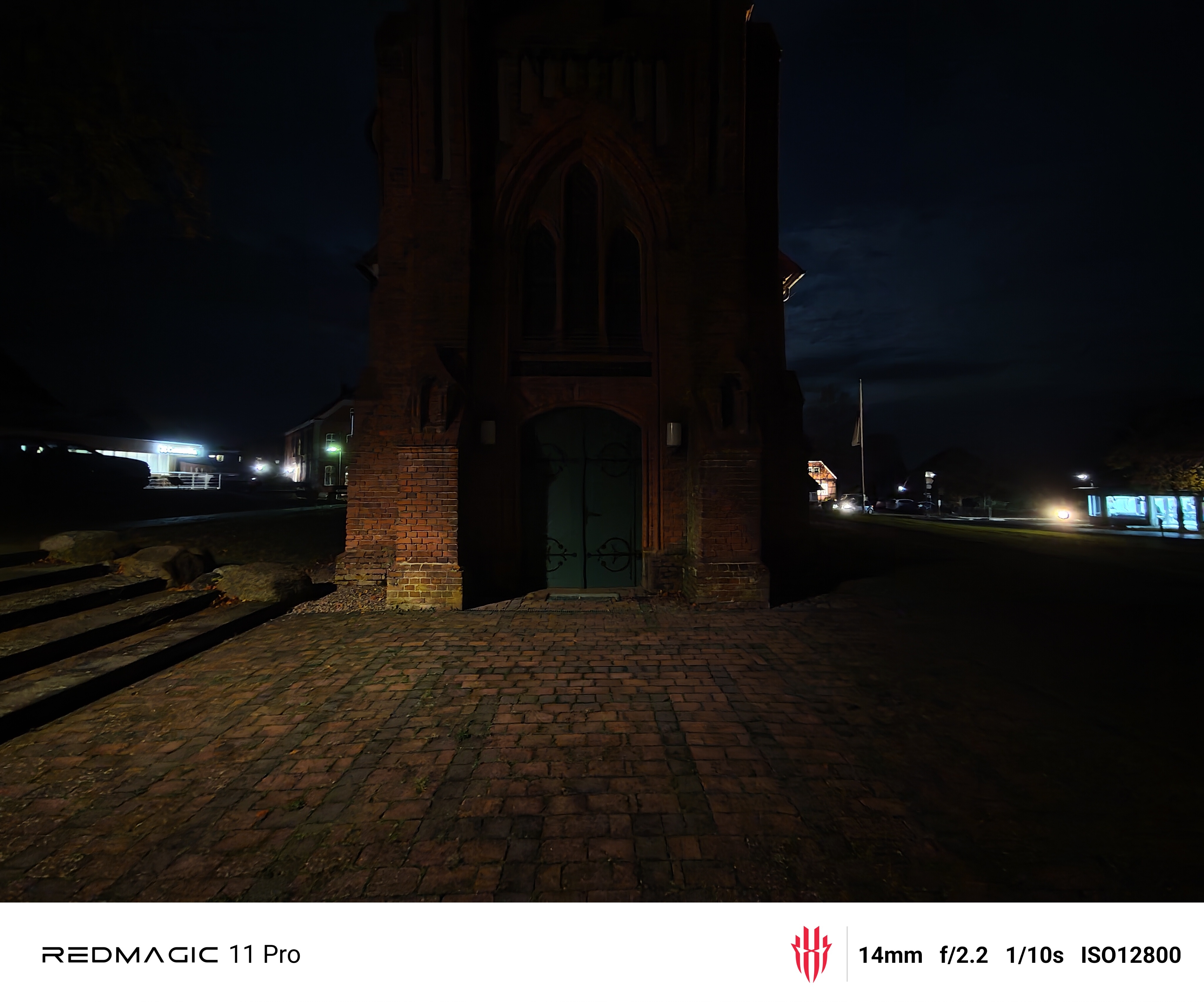 Bei Dunkelheit fallen die Ergebnisse nur mittelmäßig aus: Die Aufnahmen des Ultraweitwinkel sind sehr dunkel und weichgezeichnet. Der Hauptkamera gelingen da schon bessere Aufnahmen, aber auch diese befinden sich in etwa auf dem Niveau eines günstigen Mittelklasse-Modells.