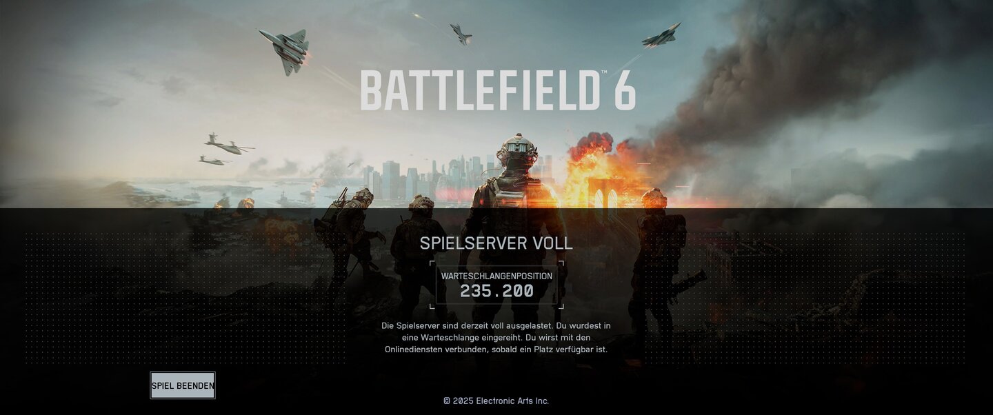 EA will uns wissen lassen, dass es ab 17 Uhr ein Warteschlangensystem für den Login von BF6 geben wird. Wenn wir nachher alle gleichzeitig auf Start drücken, erwartet uns also wahrscheinlich wieder das hier: