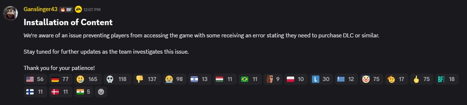 ENDLICH! EA hat via Discord bekannt gegeben, dass zumindest eine mögliche Ursache