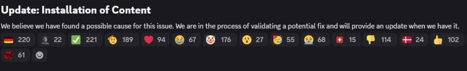 Laut einer Discord-Nachricht seitens der Entwickler wird nun an dem Problem der angeblich nicht installierten Inhalte gearbeitet: