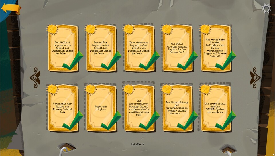 | S3 | 9 | Die Entwicklung des ursprünglichen Monkey Island dauerte … | 9 Monate |
